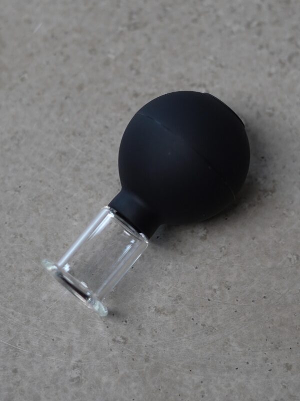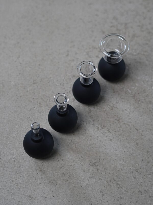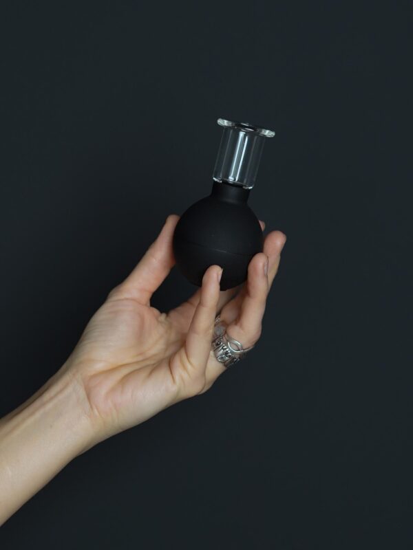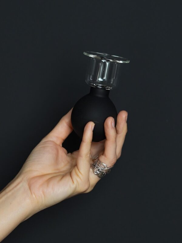 Masážna banka kombinuje kvalitné sklo a mäkkú silikónovú gumu, vďaka čomu umožňuje jemné a kontrolované vytváranie podtlaku.