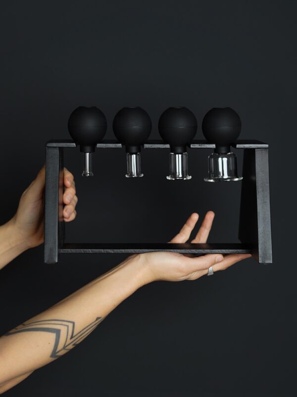 Nanes na pokožku olej alebo sérum. Jemne stlač balónik a prilož banku na pokožku. Pomaly kĺž po pokožke (nikdy nenechávaj dlho na jednom mieste). Používaj 5–10 minút.